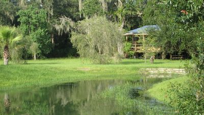 Rejuvenate your mind, body, and spirit in our 25 acres of wilderness bordering Horse Creek, a tributary of the Peace River. We welcome you to enjoy the splendor of Old Florida: green fields, spring-fed ponds, majestic oaks, palmetto thickets, flower gardens and wildlife. The pristine environment at Rasayana Cove nourishes our oneness with the elements -- space, air, fire, water, and earth.